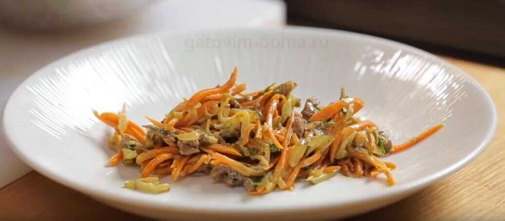 Совет: чтобы салатик получился нежнее, морковку можно для начала проварить и только потом нарезать. Тогда консистенция блюда будет более мягкой, а отварная морковь будет более сладкой, что «Обжорке» пойдет только на пользу.