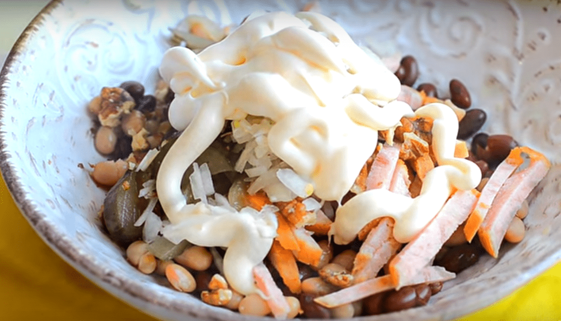 Рецепт 1: салат с фасолью и грибами (пошаговые фото)