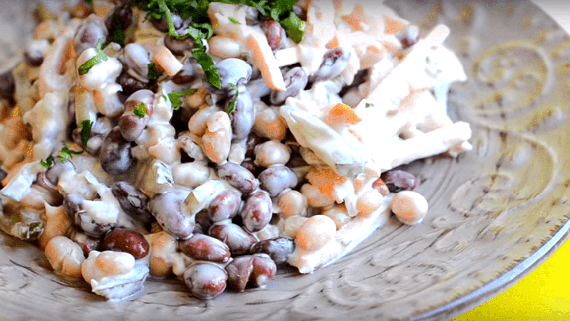 Простой и сытный салат с фасолью и грибами