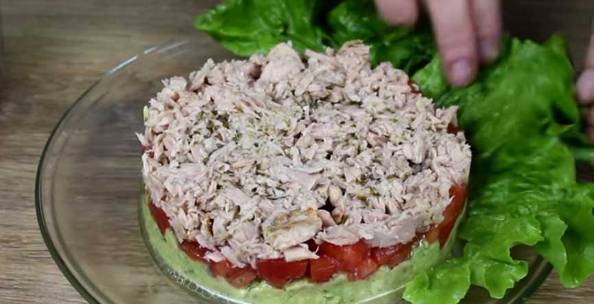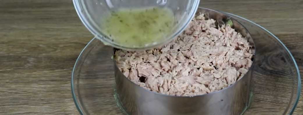 Очень вкусный слоеный салат с консервированным тунцом, яйцом и сыром