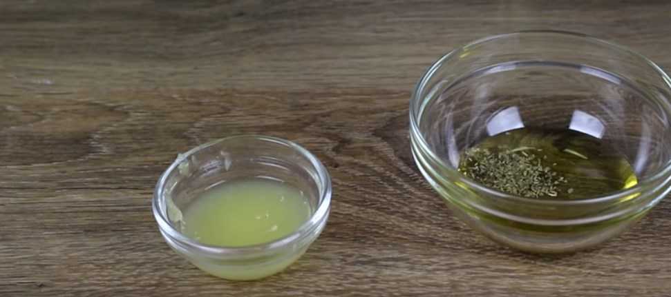 - Смешать 2 ст. л. оливкового масла и 2 ст. л. лимонного сока. Заправка готова.
