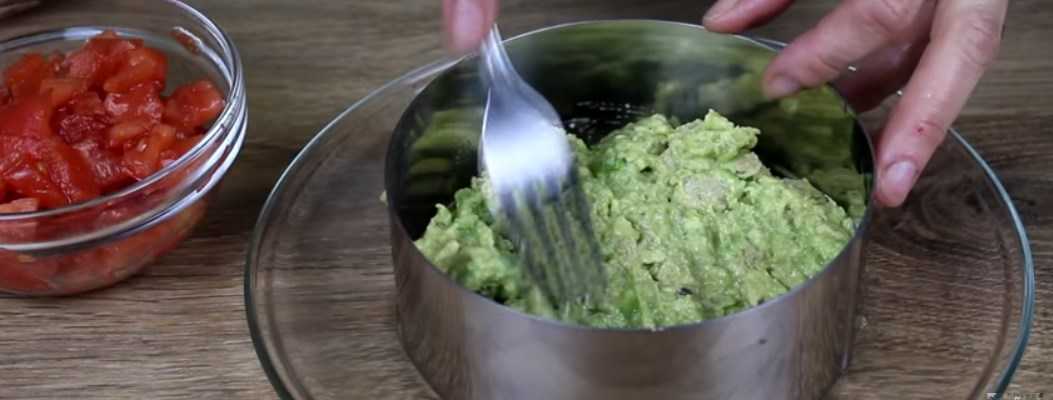 Предыдущий рецепт был на скорую руку. Там все смешал и готово. Сейчас же будет немного другая история, потому что все продукты нужно будет выложить слоями. И для этого удобно пользовать разъемным кольцом: получается идеальная форма, каждый «этаж» хорошо просматривается. Но можно обойтись и без него, тогда вручную нужно будет корректировать форму.