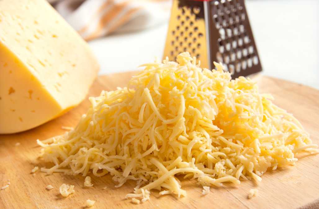 Сыр (у меня — «Голландский) натираем на средней терке, слишком мельчит нет необходимости.