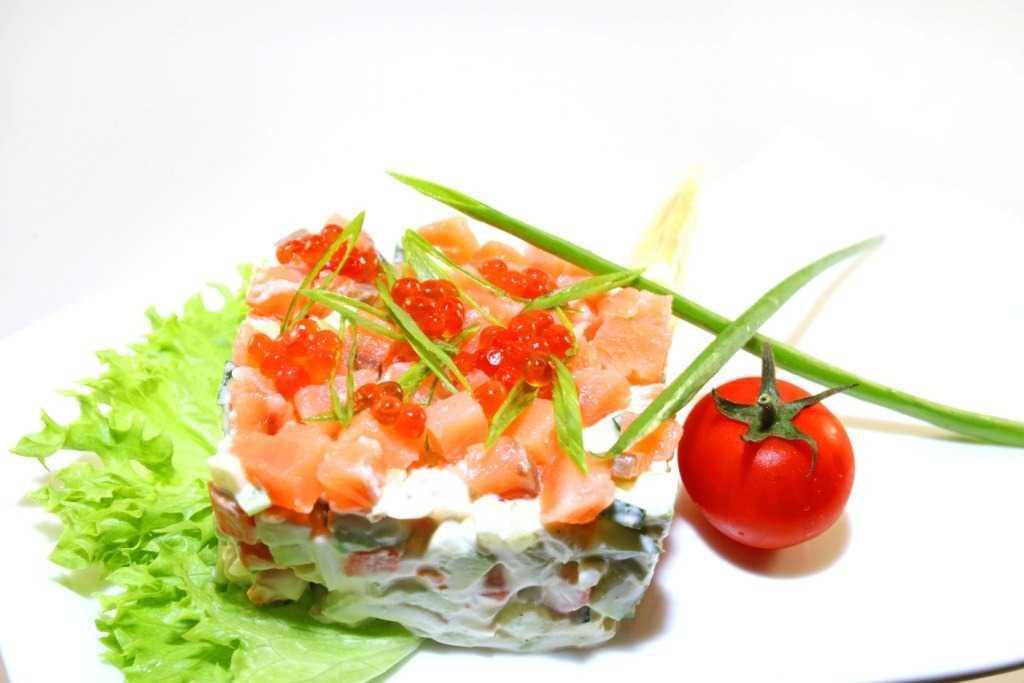 Как видите, приготовить оливье с красной рыбой получиться у любого кулинара, а количество и разнообразие рецептов позволят выбрать тот, что придется по вкусу именно вам! Пробуйте, друзья, экспериментируйте с креветками, икрой и прочими ингредиентами для необычного салата и наслаждайтесь аппетитными блюдами!