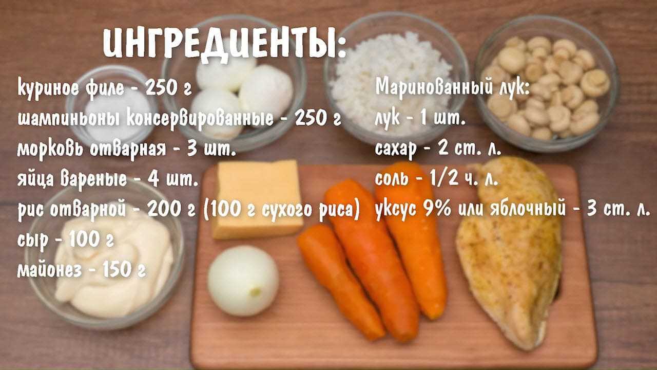 Для него предлагается брать не грудку, а окорочок, но это, разумеется, дело вкуса. Бедро варится, отделяется от костей, режется, выкладывается на блюдо и чуть-чуть сдабривается майонезом. Сверху размещается корейская морковь и тоже слегка промазывается. Этого ингредиента нужно примерно столько же, сколько и курятины.