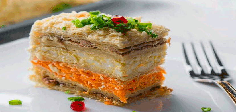 Рецепт 5: закусочный Наполеон с рыбой «пчёлки»